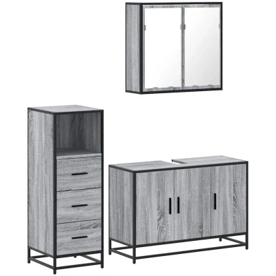 vidaXL 3 Piece Bathroom Furniture Set Grey Sonoma Engineered Wood