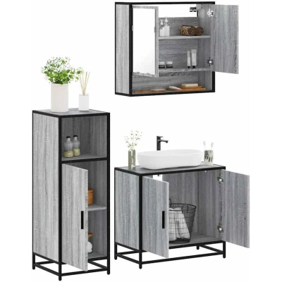 vidaXL 3 Piece Bathroom Furniture Set Grey Sonoma Engineered Wood