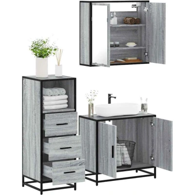 Vidaxl 3 Piece Bathroom Furniture Set Grey Sonoma Engineered Wood