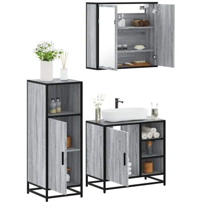 Vidaxl 3 Piece Bathroom Furniture Set Grey Sonoma Engineered Wood