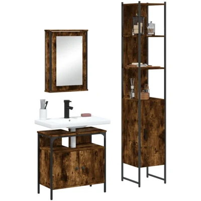 vidaXL 3 Piece Bathroom Furniture Set Smoked Oak Engineered Wood