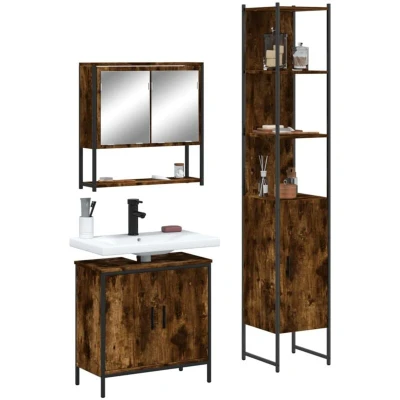 Vidaxl 3 Piece Bathroom Furniture Set Smoked Oak Engineered Wood