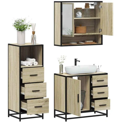 Vidaxl 3 Piece Bathroom Furniture Set Sonoma Oak Engineered Wood