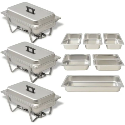 vidaXL 3 Piece Chafing Dish Set Stainless Steel