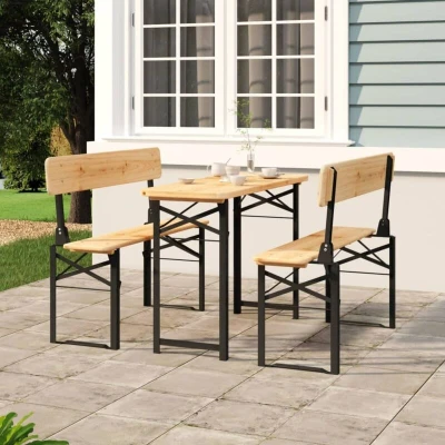 VidaXLThis practical folding beer table set is a great choice for outdoor activities such as camping, picnic, barbecues, parties, etc. Durable fir: Solid fir wood is a beautiful natural material. Fir wood doesn't dry out or warp when exposed to moisture.Stable frame: The metal frames of the beer table and benches ensure sturdiness and stability.Practical tabletop: The fir wood tabletop offers excellent support for holding your drinks, snacks and your favourite decorations.Foldable design: Both the garden table and benches can be easily folded away when not in use, for easy storage and transportation. Good to know:To make assembly as easy as possible, each product is delivered with a manual. Note:To make sure your outdoor furniture stays beautiful, we recommend protecting it with a waterproof cover.