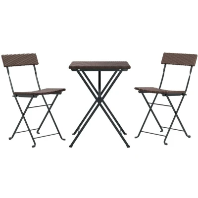 VidaXLThis 3 piece folding bistro set made of poly rattan is an excellent choice for dining or relaxing in your garden, balcony or patio. Durable material: PE rattan, also known as poly rattan, is weather resistant and easy to clean. It remains beautiful on the outside for a long period of time. It's more economical than other materials, while offering great quality, convenience and an aesthetic look.Stable frame: The powder-coated steel frame ensures sturdiness and stability.Foldable design: The table and chairs can be easily folded away when not in use, for easy storage and transportation. Note:In order to extend the life of your outdoor furniture, we recommend you to protect it with a waterproof cover.Each product comes with an assembly manual in the box for easy assembly.