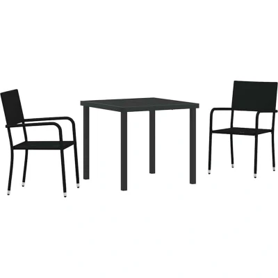 vidaXL 3 Piece Garden Dining Set Black Poly Rattan