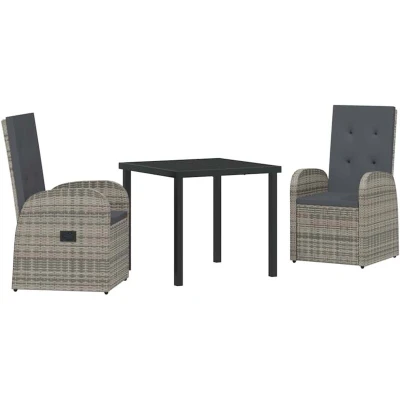 vidaXL 3 Piece Garden Dining Set with Cushions Grey Poly Rattan