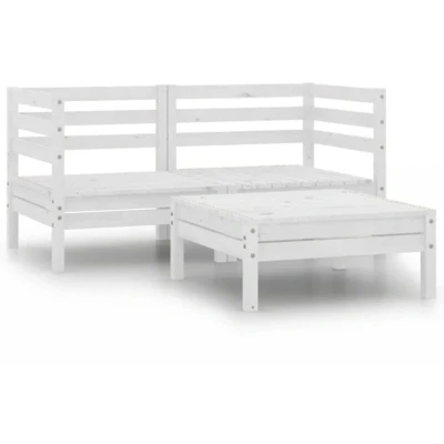 vidaXL 3 Piece Garden Lounge Set Solid Pinewood White
