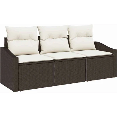 vidaXL 3 Piece Garden Sofa Set with Cushions Brown Poly Rattan