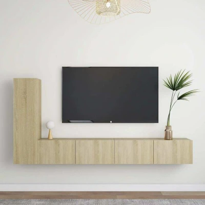 vidaXL 3 Piece Wall Mounted TV Cabinet Set Sonoma Oak Engineered Wood Ample Storage Room Easy Maintenance Modern Style Ideal for Living Rooms