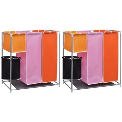 vidaXL 3 Section Laundry Sorter Hampers 2 pcs with a Washing Bin