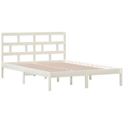 General description This wooden bed frame offers a modern touch to your bedroom while serving as a practical and decorative addition to your interior. Made from premium solid pine wood, it features a beautiful natural grain and rustic knots that enhance its aesthetic appeal. Technical specifications Colour: White Bed frame material: Solid pine wood Slat material: Plywood Overall dimensions: 205.5 x 146 x 100 cm (L x W x H) Headboard dimensions: 146 x 4 x 100 cm (W x D x H) Suitable mattress size: 140 x 200 cm (W x L) (mattress not included) Assembly required: Yes SKU: 3101219 Compatibility and accessories Delivery includes: 1 x Bed frame, 1 x Headboard This bed frame is suitable for a mattress measuring 140 x 200 cm. You can check our shop for matching mattresses. Installation Some headboard parts are packaged in the bed frame cartons due to space limitations. Usage The sturdy plywood slats provide good weight distribution, ensuring that the mattress stays in place during sleep. The