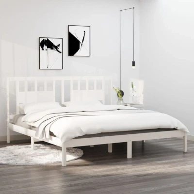 Vidaxl 3104084 Bed Frame without Mattress White Solid Wood 200x200 cm (810038+818691)