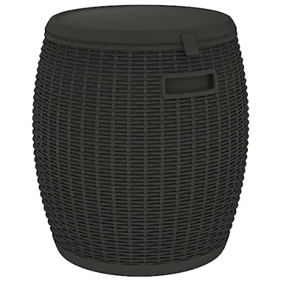 This garden storage box is perfect for organising and storing your outdoor essentials. Additionally, it can be used as a stool, a side table, or an ice cooler, making it a versatile choice for outdoor settings. Durable material: Polypropylene (PP) is a popular plastic that is also one of the most used materials in outdoor furniture. It's lightweight, tough, and resistant to impact. Also, its resistance to UV rays and weathering makes it easy to clean and maintain.4-in-1 function: The outdoor storage box combines a storage box, a stool, an ice cooler, and a side table in one. Filling the container with ice can keep drinks cool for several hours. With the lid closed, the storage box can also be transformed into extra seating or a side table.Imitation rattan look design: The bistro table features an imitation rattan design that adds a touch of natural charm to your outdoor living space.Built-in drainage plug: The convenient built-in drainage plug makes post-party cleanup easy. When the party is over and the ice has melted, simply pull the plug to quickly drain the beverage cooler and let it air-dry before putting it away for next time.Convenient side handles: The bar table is equipped with easy-to-grip handles, providing a convenient and effortless experience. Note:To make sure your outdoor furniture stays beautiful, we recommend protecting it with a waterproof cover.