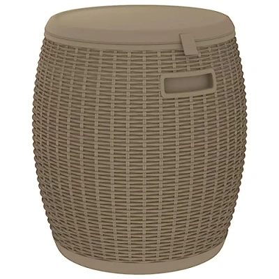Amazon【Robust Material】: Constructed of durable, lightweight, and impact-resistant Polypropyleftene (PP) material that is also weather and UV-resistant for easy maintenance and outdoor use 【Optimized Convenience】: Equipped with convenient side handles for effortless handling, and a built-in drainage plug to facilitate easy clean-up post-party 【Spacious Storage Capacity】: Provides a storage capacity of 37 L (9.8 Gal), ideal for storing outdoor essentials, and boasts a max. load capacity of 75 kg, allowing it for additional seating or a side table 【Rattan-style Aesthetics】: The imitation rattan design imbues a natural charm to your outdoor environment, making the storage box an appealing addition to your garden aesthetics 【Multifunctional Design】: Versatile 4-in-1 function as a storage box, a stool, an ice cooler, and a side table, ensuring ample uses in your garden, patio, or living room