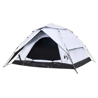 vidaXL 4 Person Dome Camping Tent White Blackout, Quick Release, PU Coated Polyester, Weather Resistant, E Port