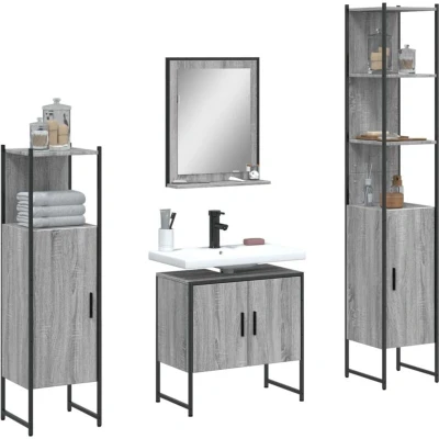 vidaXL 4 Piece Bathroom Cabinet Set Grey Sonoma Engineered Wood