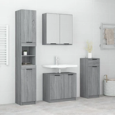 vidaXL 4 Piece Bathroom Cabinet Set Grey Sonoma Engineered Wood