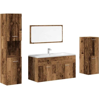 vidaXL 4 Piece Bathroom Furniture Set Old Wood Engineered