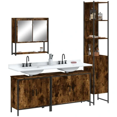 vidaXL 4 Piece Bathroom Furniture Set Smoked Oak Engineered Wood