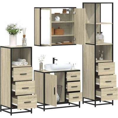 vidaXL 4 Piece Bathroom Furniture Set Sonoma Oak Engineered Wood