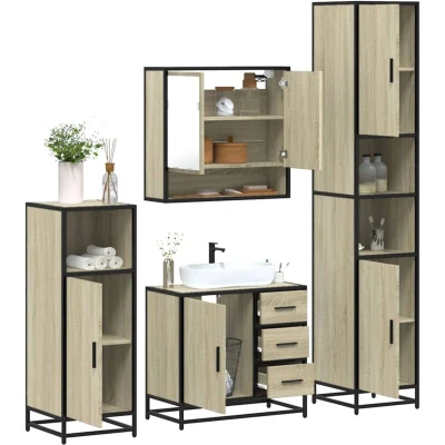 vidaXL 4 Piece Bathroom Furniture Set Sonoma Oak Engineered Wood