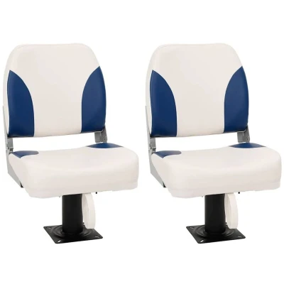 This practical boat seat set will make a great addition to your boat. Easy to clean: This boat seat is made from PVC and PU, making it water-resistant, easy to clean, and quickly dry. Long-lasting material: The boat seat pedestal is made of steel, making it sturdy and long-lasting. Its black powder-coat finish adds extra protection against the harsh marine environment. Comfortable: This boat seat has a high backrest that has compression foam padding. You will stay comfortable all day and release the stress on your back. Foldable design: The boat seat features a foldable design, allowing the backrest to fold down when not in use. Universal compatibility: This boat seat pedestal is suitable for all seats with a flat bottom or where the hole size can be used for ball bearings, giving you the freedom to choose and combine according to your specific needs. Assembly required: Yes Chair: Colour: Blue, white and grey Fabric material: PU (polyurethane), PVC Filling material: High-compression