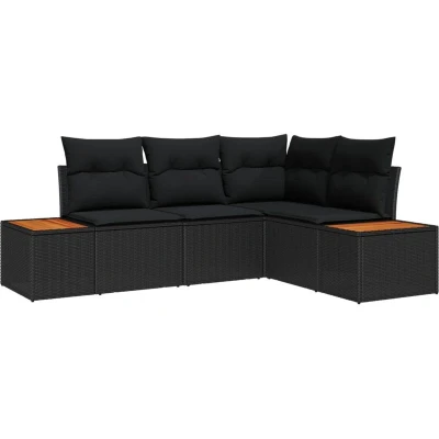 vidaXL 4 Piece Garden Sofa Set with Cushions Black Poly Rattan Acacia