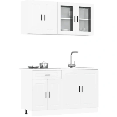 vidaXL 4 Piece Kitchen Cabinet Set Kalmar White Engineered Wood and Glass Storage Unit with Adjustable Feet for Spacious Modern