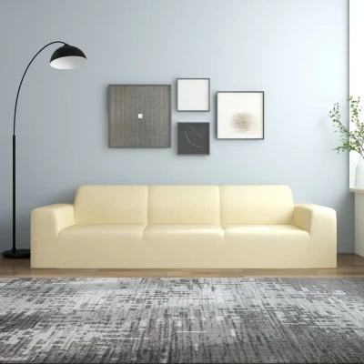 vidaXL 4 Seater Stretch Couch Slipcover Cream Polyester Jersey