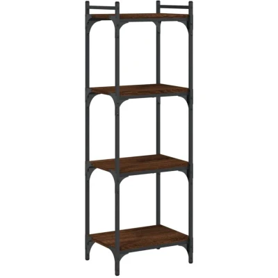 vidaXL 4 Tier Bookcase Brown Oak Engineered Wood Bookshelf and Storage Cabinet with Metal Frame in Industrial Style