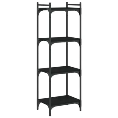 vidaXL 4 Tier Bookshelf Black Engineered Wood Storage Cabinet Rack with Adjustable Feet and Sturdy Metal Frame for Living Room, Bedroom