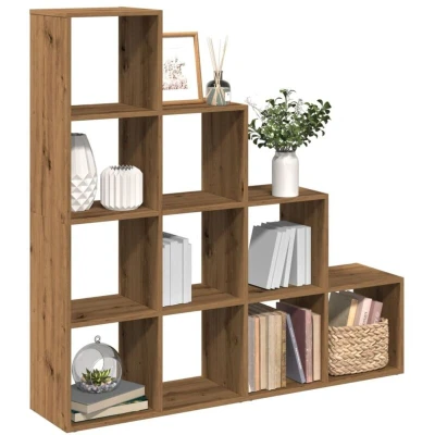 ManoManoGeneral description The 4-Tier Room Divider Bookcase in Artisan Oak is designed to enhance your space while providing ample storage. With ten cubic compartments, it is perfect for organizing books, decorations, and other household items. Its versatile design allows it to function as both a bookcase and a room divider, making it suitable for various settings such as living rooms, studies, bedrooms, and basements. Technical specifications Colour: Artisan oak Material: Engineered wood Overall dimensions: 131.5 x 29 x 131.5 cm (W x D x H) Dimensions of each cube: 31 x 29 x 31 cm (W x D x H) Total weight capacity: 100 kg Weight capacity of each cube: 10 kg Assembly required: Yes Installation To prevent tipping, use the provided wall attachment device. Screws and plugs for wall attachment are not included; choose suitable ones for your walls. Follow the assembly instructions carefully. Usage This bookcase can be used in various ways: As a room divider to create distinct areas in a room. In