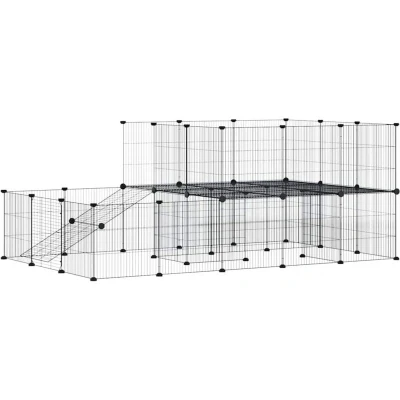 General description This trusty pet cage provides a spacious and safe enclosed space for your lovely pets to exercise, play, and rest. Made of sturdy powder-coated steel, this durable cage ensures years of use with minimal maintenance. The design features multiple panels, allowing you to assemble it into any shape and size you desire, offering plenty of room for your pets to play and rest safely within the boundaries. The practical door enhances convenience for pet care. Technical specifications Colour: Black Material: Powder-coated steel Panel size (each): 35 x 35 cm (L x H) Grid height (each): 1.5 cm Delivery contains: 44 x Panel 88 x Connector 44 x Floor protector 144 x Tie rib 2 x Door clip Other information Each product comes with an assembly manual in the box for easy assembly.