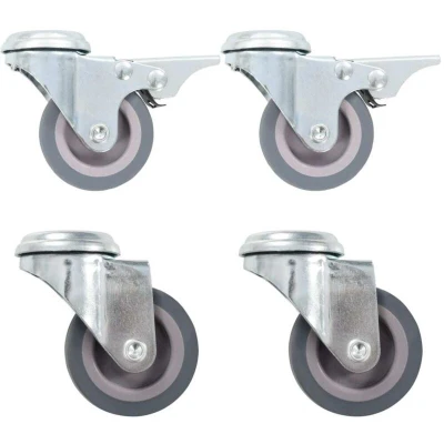 VidaXLThis set of 4 bolt hole swivel casters will be the perfect accessory for small equipment and furniture like workbench, trolley, coffee table, plant stand, bookshelf, shopping cart, etc. These casters are made of TPR (thermoplastic rubber) which is distinguished by a good shock and vibration resistance, enabling these casters to run smoothly and quietly. Additionally, their soft surfaces effectively protect your floor from scratching. Besides, the zinc-coated iron frame is highly rust-resistant and thus adds to the catser's sturdiness and durability. Two of these swivel casters are equipped with double brakes for flexible control. Each caster has a maximum loading capacity of up to 35 kg. Delivery includes 2 bolt hole swivel casters and 2 bolt hole swivel casters with double brakes.