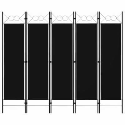 vidaXL 5 Panel Room Divider Freestanding, Elegant Circle Design, Black Powder Coated Iron Frame, 100% Polyester Fabric, Versatile for Living or Bedroom, Assembly Required