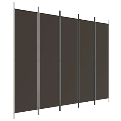 vidaXL 5 Panel Room Divider in Brown Versatile and Foldable Fabric Partition, 250x200 cm, Ideal for Living Bedroom, Easy Assembly, Modern Design