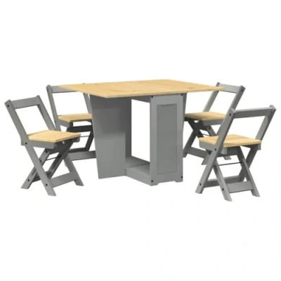 vidaXL 5 Piece Butterfly Dining Set Corona Foldable Grey Pinewood