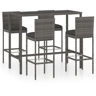 vidaXL 5 Piece Garden Bar Set Outdoor Poly Rattan Furniture with Cushions and Tempered Glass Tabletop Grey