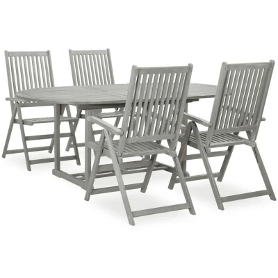 vidaXL 5 Piece Garden Dining Set (150 200)x100cm Solid Acacia Wood Grey