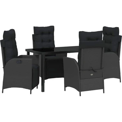 vidaXL 5 Piece Garden Dining Set Black Poly Rattan
