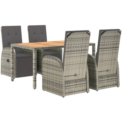 vidaXL 5 Piece Garden Dining Set Grey Poly Rattan&Solid Wood Acacia
