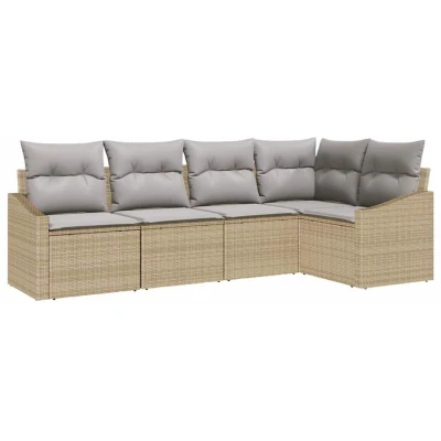 vidaXL 5 Piece Garden Dining Set with Cushions Beige Poly Rattan