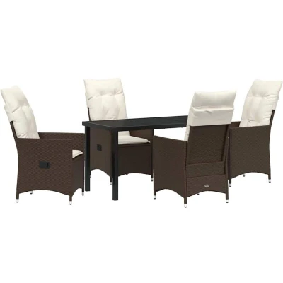 vidaXL 5 Piece Garden Dining Set with Cushions Brown Poly Rattan