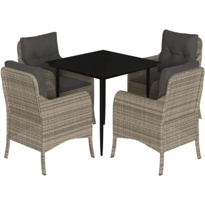 vidaXL 5 Piece Garden Dining Set with Cushions Light Grey Poly Rattan