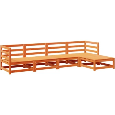 vidaXL 5 Piece Garden Sofa Set Wax Brown Solid Wood Pine