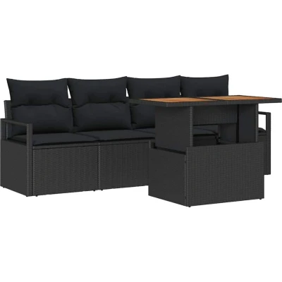 vidaXL 5 Piece Garden Sofa Set with Cushions Black Poly Rattan