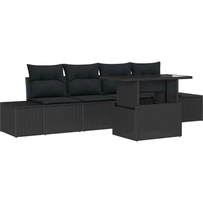 vidaXL 5 Piece Garden Sofa Set with Cushions Black Poly Rattan