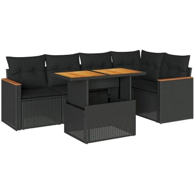 vidaXL 5 Piece Garden Sofa Set with Cushions Black Poly Rattan Acacia